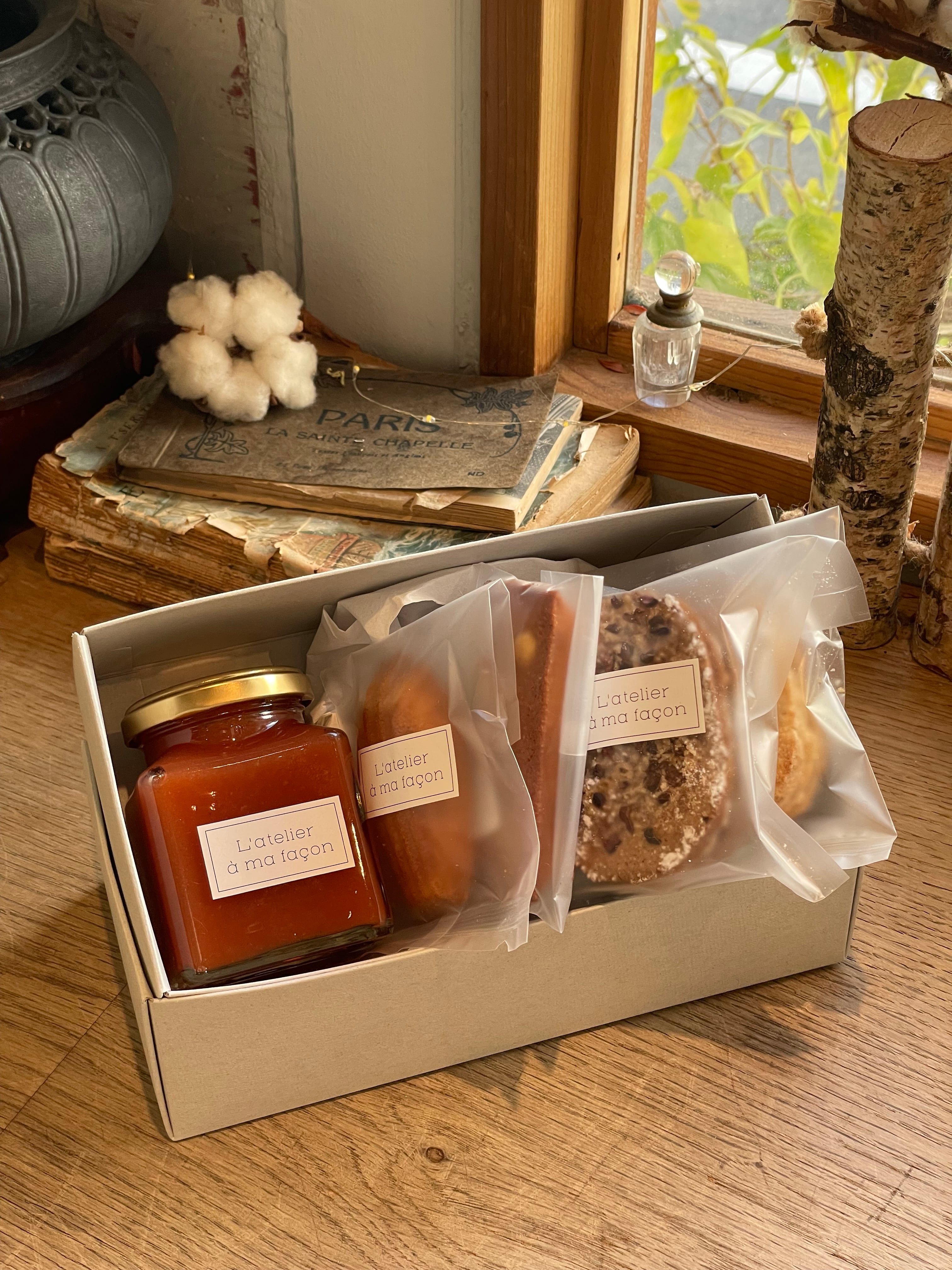 苺と国産マーガオのコンフィチュールと店頭で人気の焼き菓子を詰め合わせました。