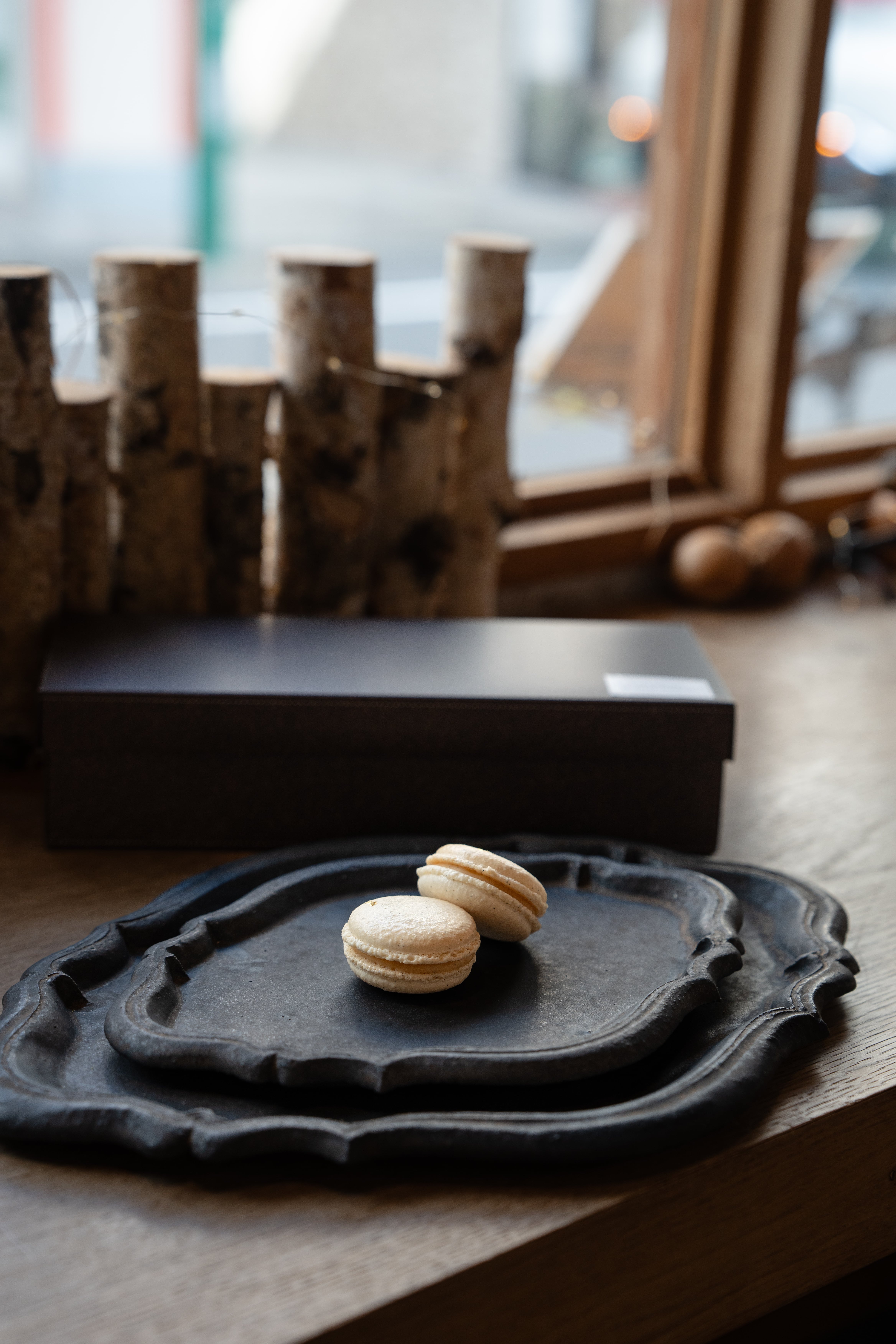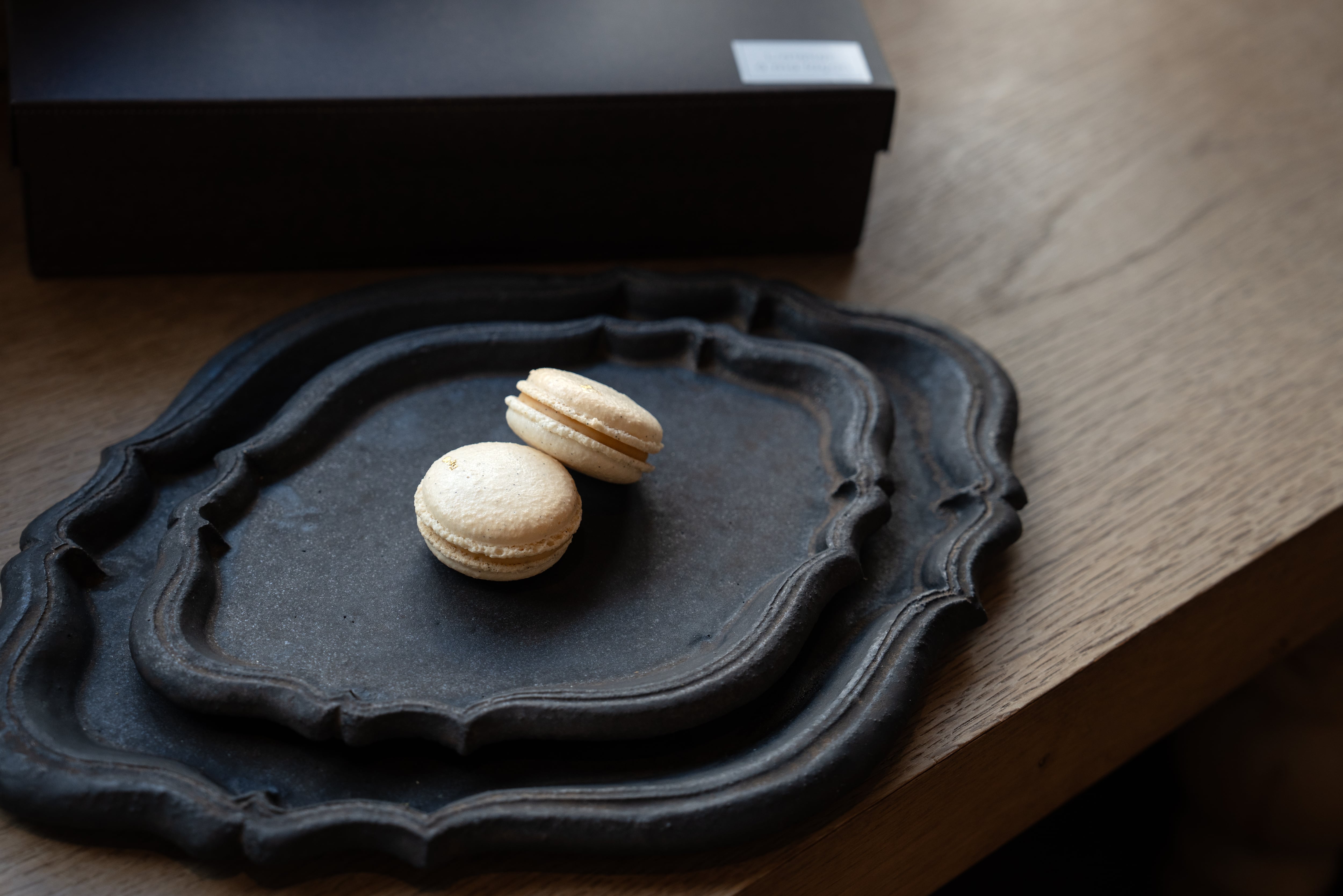 ブルゾン種のバニラビーンズをふんだんに使用したキャラメル風味のバニラガナッシュを挟んだ、バニラ好きにはたまらない濃厚な味わいです。
